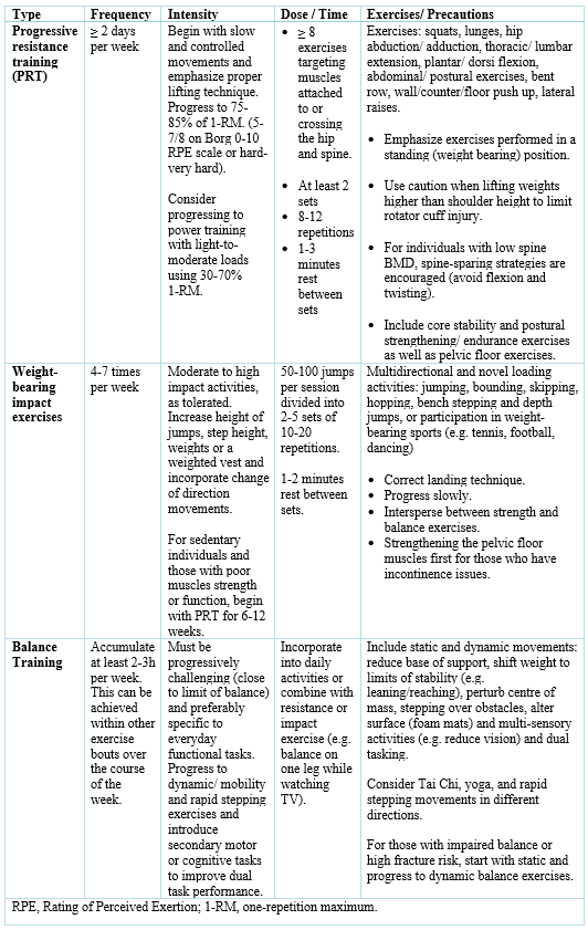 Exercise prescription for the treatment and prevention of osteoporosis
